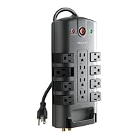 You've got a lot of money invested in your home computer and peripherals, so you need to protect them. The Belkin BP112230-08 12-Outlet Pivot-Plug Surge Protector, with its unique rotating outlet design, is built to give you the peace of mind you need in case a power disturbance hits your home. Keeping the Computers Running As the demand for electricity to feed our hi-tech appetite increases, the likelihood of power interruptions and problems are also increasing. In addition to problems caused by the increasing severity of storms across the country, power experts are predicting that increasing power demand will soon put most major population centers at risk for severe power problems. As you know, power lulls and surges can severely damage your electronic equipment and even destroy your invaluable data.The 12-Outlet Pivot-Plug Surge Protector provides premium power protection for both home and professional workstations. In addition to protection your computer, this protector is the ideal solution for all of your sensitive electronic equipment, and it includes additional protection for your telephone lines and coaxial connections . It's built to protect professional workstations, laser printers, home-theater systems, and everyday household electronics. The unique pivot-plug design provides greater convenience and flexibility in placing your plugged-in devices than traditional surge protectors. Eight of the 12 outlets pivot, allowing you better angles to connect your equipment and extra room for large AC adapter blocks. The surge protection features advanced design elements, high-quality construction, and superior circuitry and components that combine to provide the most complete protection from power surges, spikes, and AC contamination. A detachable cord-management clip will help you organize your cables and keep your desk clutter free. A right-angle plug helps you better manage your furniture by keeping the 8-foot cord close to the wall, and the protector's sleek design will blend seamlessly with today's modern electronics and appliances. The Belkin 12-Outlet Surge Protector is backed by a Belkin Lifetime Warranty and a $300,000 Connected Equipment Warranty.